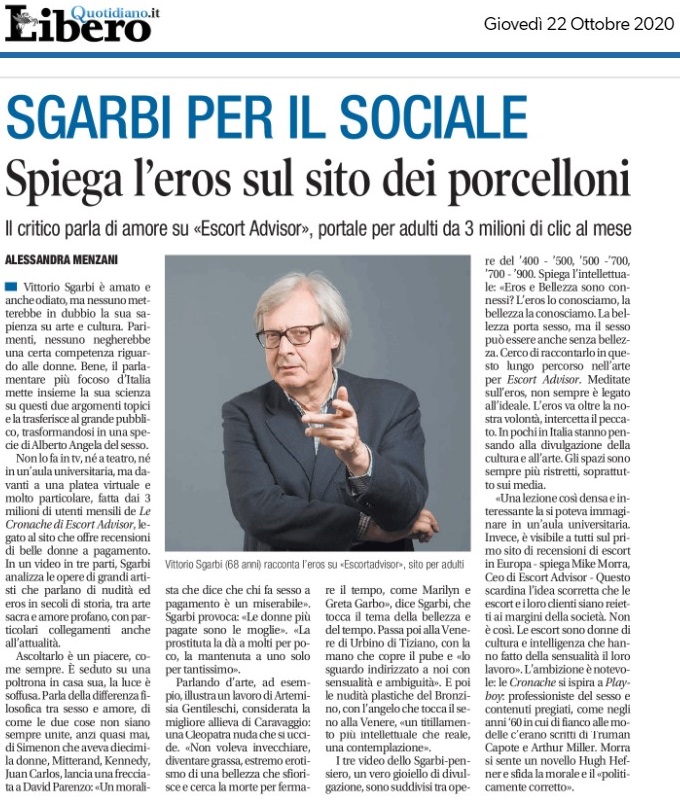 Escort Advisor a Stasera Italia: Weekend del 22 novembre 2020